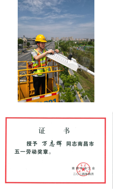 近日,江西省南昌市總工會公布五一勞動獎章獲得者名單,江西公司所屬晶和科技萬志輝同志榮獲2024年“南昌市五一勞動獎章”稱號。 萬志輝,作為一名基層運維技術員,從事城市照明設施維護與維修工作,專注探索電力系統(tǒng)知識,深入鉆研照明設施維修技術,積極學習智能化管理手段。工作中,身為90后的他卻常被喚作“萬師傅”,這是大家對他扎實、嫻熟技術技能本領的認可。全年日常道路巡查70余次,維修故障燈具約600盞,排查處理問題270多次,他用自己的專業(yè)技術與奉獻精神為市民安全出行保駕護航。他還通過手把手教學和實踐操作,將自己的專業(yè)技能和豐富經(jīng)驗無私地傳授給同事,為公司輸送了一批技術過硬的一線技術人才。