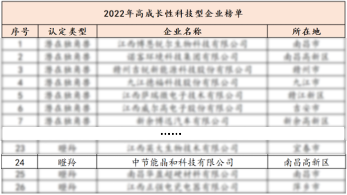近日,江西省科技廳公布2022年高成長性科技型企業(yè)榜單,中節(jié)能江西公司下屬晶和科技成功入選瞪羚企業(yè)榜單。