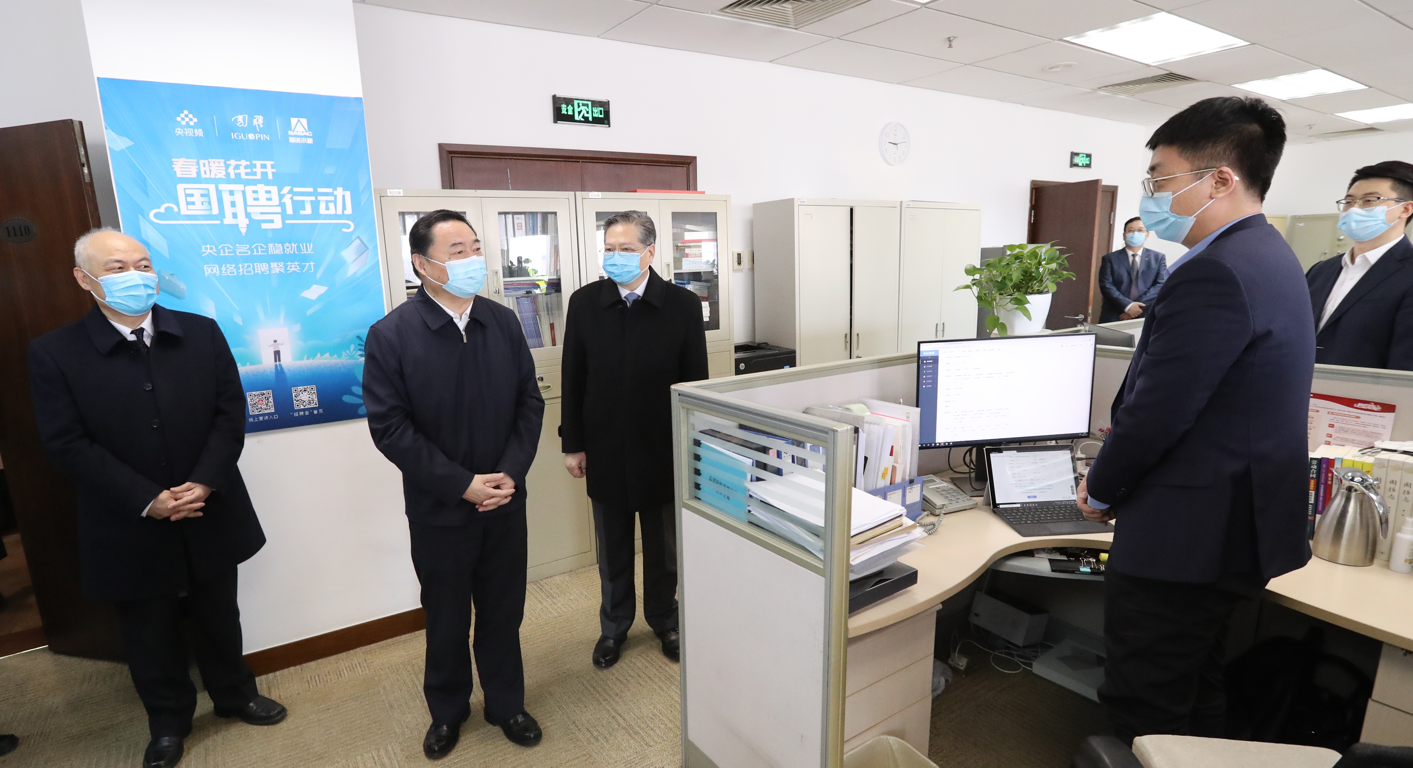 郝鵬首先來到國投人力資源服務(wù)公司,詳細(xì)了解中央企業(yè)2020年春季大型網(wǎng)絡(luò)招聘“國聘行動(dòng)”進(jìn)展情況,對(duì)企業(yè)適應(yīng)疫情防控,勇?lián)鐣?huì)責(zé)任,推廣網(wǎng)絡(luò)“無接觸式”招聘服務(wù)用人企業(yè)和求職者促進(jìn)穩(wěn)就業(yè)給予充分肯定,要求企業(yè)進(jìn)一步做強(qiáng)做大招聘平臺(tái),聚合更多優(yōu)質(zhì)崗位資源,幫助更多高校應(yīng)屆畢業(yè)生和社會(huì)求職者順利就業(yè),助力穩(wěn)就業(yè)和企業(yè)復(fù)工復(fù)產(chǎn)。接著,郝鵬與國投控股的梅河口市阜康酒精公司、新疆羅布泊鉀鹽公司視頻連線,要求企業(yè)在做好疫情防控同時(shí),提高產(chǎn)量、保證質(zhì)量,生產(chǎn)更多酒精、鉀肥等產(chǎn)品,保障疫情防控和春耕生產(chǎn)需要。 國投管理運(yùn)作的中央企業(yè)貧困地區(qū)產(chǎn)業(yè)投資基金主要用于貧困地區(qū)資源開發(fā)、產(chǎn)業(yè)園區(qū)建設(shè)等,是國資委整合央企力量精準(zhǔn)扶貧的有益探索。郝鵬認(rèn)真了解基金助力疫情防控和脫貧攻堅(jiān)開展的工作,仔細(xì)詢問基金投資的扶貧項(xiàng)目選擇標(biāo)準(zhǔn)、成效如何等,強(qiáng)調(diào)扶貧基金因扶貧而設(shè),要切實(shí)管理好,真正為扶貧所用,有效服務(wù)國家脫貧攻堅(jiān)戰(zhàn)。今年是脫貧攻堅(jiān)戰(zhàn)收官之年,要在保證基金安全的前提下,更加注重基金的社會(huì)效益,加大對(duì)深度貧困地區(qū)投資力度,引領(lǐng)帶動(dòng)更多社會(huì)資金參與脫貧攻堅(jiān),努力探索可持續(xù)的產(chǎn)業(yè)扶貧模式。