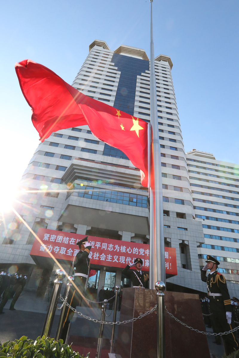升旗儀式開(kāi)始,隨著莊嚴(yán)雄壯的《義勇軍進(jìn)行曲》響起,擎旗手揮臂揚(yáng)旗,鮮艷的五星紅旗冉冉升起,迎著朝陽(yáng)高高飄揚(yáng)。全場(chǎng)人員面向國(guó)旗肅立,行注目禮,滿(mǎn)懷深情高唱國(guó)歌,共同祝愿?jìng)ゴ蟮淖鎳?guó)繁榮昌盛。 郝鵬指出,剛剛過(guò)去的2020年,極為不易、極不平凡。面對(duì)世紀(jì)罕見(jiàn)的嚴(yán)重沖擊,以習(xí)近平同志為核心的黨中央團(tuán)結(jié)帶領(lǐng)全黨全國(guó)各族人民披荊斬棘、攻堅(jiān)克難,在極不尋常的年份創(chuàng)造了極不尋常的輝煌。國(guó)資央企在大戰(zhàn)大考中挺身而出、勇挑重?fù)?dān),盡銳出戰(zhàn)抗擊疫情,“兩個(gè)力爭(zhēng)”如期實(shí)現(xiàn),推動(dòng)國(guó)企改革三年行動(dòng)落實(shí)落地,促進(jìn)科技攻堅(jiān)取得新成果,防范化解重大風(fēng)險(xiǎn)有力有效,黨的領(lǐng)導(dǎo)黨的建設(shè)切實(shí)加強(qiáng),大國(guó)頂梁柱作用充分彰顯,向黨和人民交出了一份合格答卷。 郝鵬強(qiáng)調(diào),2021年是中國(guó)共產(chǎn)黨百年華誕,是乘勢(shì)而上開(kāi)啟全面建設(shè)社會(huì)主義現(xiàn)代化國(guó)家新征程、向第二個(gè)百年奮斗目標(biāo)進(jìn)軍的開(kāi)局之年。要繼續(xù)奮斗,勇往直前,把牢政治方向、做到“兩個(gè)維護(hù)”,不斷提高政治判斷力、政治領(lǐng)悟力、政治執(zhí)行力,堅(jiān)決貫徹落實(shí)習(xí)近平總書(shū)記重要指示精神和黨中央、國(guó)務(wù)院決策部署;胸懷“兩個(gè)大局”、心系“國(guó)之大者”,指導(dǎo)推動(dòng)中央企業(yè)當(dāng)好構(gòu)建新發(fā)展格局的主力軍,成為促進(jìn)科技自立自強(qiáng)的國(guó)家隊(duì),充分發(fā)揮國(guó)有經(jīng)濟(jì)戰(zhàn)略支撐作用;堅(jiān)持改革開(kāi)放、推動(dòng)高質(zhì)量發(fā)展,大力推動(dòng)國(guó)企改革三年行動(dòng),加快國(guó)有經(jīng)濟(jì)布局結(jié)構(gòu)調(diào)整,進(jìn)一步做強(qiáng)做優(yōu)做大國(guó)有資本和國(guó)有企業(yè);持續(xù)加強(qiáng)國(guó)資監(jiān)管、促進(jìn)國(guó)有資產(chǎn)保值增值,進(jìn)一步提高專(zhuān)業(yè)化監(jiān)管能力,優(yōu)化監(jiān)管方式,不斷提升監(jiān)管效能;堅(jiān)持黨的全面領(lǐng)導(dǎo)、切實(shí)加強(qiáng)黨的建設(shè),進(jìn)一步強(qiáng)化黨的意識(shí)和組織觀念,努力跑出歷史接力賽的更好成績(jī)。