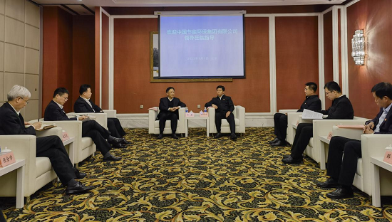 中國節(jié)能黨委書記、董事長宋鑫(左2)與錦州市委書記劉克武(右2)進(jìn)行座談