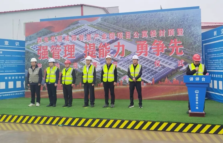 11月15日,由中國(guó)啟源總承包的西電集團(tuán)咸陽(yáng)智慧產(chǎn)業(yè)園項(xiàng)目舉行公寓樓封頂暨“強(qiáng)管理、提能力、勇?tīng)?zhēng)先”勞動(dòng)競(jìng)賽啟動(dòng)儀式。