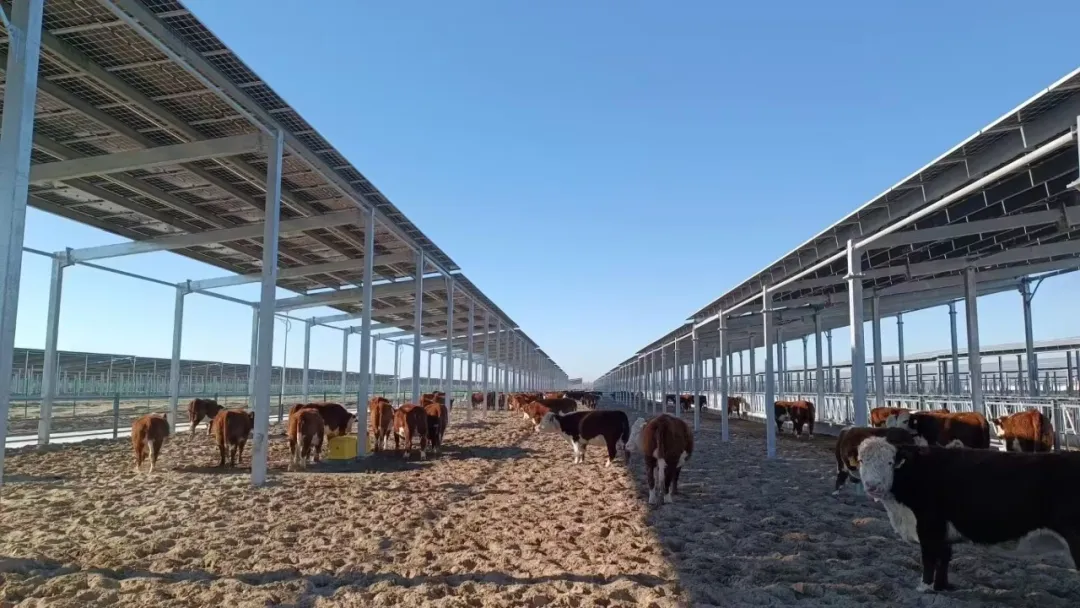 該項目是新疆生產(chǎn)建設兵團首個超級牧場項目,采用“EOD生態(tài)開發(fā)、牧光互補、低碳綠能、草畜一體、種養(yǎng)結(jié)合”的可持續(xù)發(fā)展模式,分三期建設,一期占地9388畝,建設內(nèi)容包括辦公樓、宿舍樓、牛舍、動物保健中心、全混合日糧中心、升壓站及送出線路等設施。其中,牛舍建設面積達72萬平方米,光伏總裝機容量398兆瓦。建成后,養(yǎng)殖規(guī)模可達存欄和牛5萬頭的產(chǎn)能,每年可為電網(wǎng)提供清潔電能5.6億千瓦時,將成為亞洲最大的牧光融合產(chǎn)業(yè)集群。