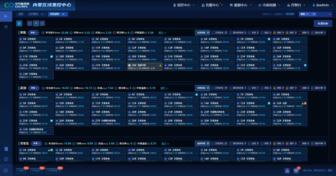 各區(qū)域公司充分發(fā)揮中長(zhǎng)期市場(chǎng)“壓艙石”作用,各風(fēng)場(chǎng)結(jié)合實(shí)際制定了按持倉(cāng)上限參與中長(zhǎng)期交易,以較高價(jià)格足量簽約年度中長(zhǎng)期合同。其中,西中區(qū)域公司將日分時(shí)電力與持倉(cāng)精準(zhǔn)匹配,有效減少部分時(shí)段現(xiàn)貨高價(jià)回購(gòu)或低價(jià)售出的風(fēng)險(xiǎn),實(shí)現(xiàn)了“年+月+日滾動(dòng)”的交易時(shí)序全覆蓋,膠泥梁風(fēng)電場(chǎng)較不參與中長(zhǎng)期交易多獲益105萬(wàn)元;新疆通過(guò)日滾動(dòng)窗口期套利427萬(wàn)元;華北、西南、魯豫通過(guò)參與綠電交易,獲得增收379萬(wàn)元。 數(shù)智賦能筑根基,科技引領(lǐng)開(kāi)新局
