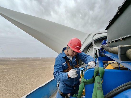 在河南子夏風電場,想要避開高溫作業(yè),運檢人員就必須在清晨五點到達野外設備區(qū),并在中午前完成全部檢修工作,即便如此設備區(qū)內(nèi)的溫度依然不斷考驗著人體對高溫的承受力?!白钆碌木褪峭话l(fā)的設備故障”,子夏風電場檢修員李哲說,“但是,每當葉輪恢復轉(zhuǎn)動的那一刻,流再多的汗也值得了”。