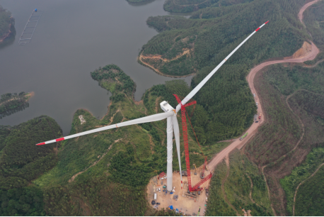 11月22日,風(fēng)電廣西公司中節(jié)能欽南三期項(xiàng)目首臺6.7兆瓦風(fēng)機(jī)順利完成吊裝,該臺風(fēng)機(jī)是目前風(fēng)電公司系統(tǒng)內(nèi)單機(jī)容量最大、塔筒高度最高、葉片最長、起重量最大的風(fēng)機(jī)。
