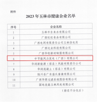 風(fēng)電廣西公司獲“玉林市健康企業(yè)”榮譽(yù)稱號(hào) |