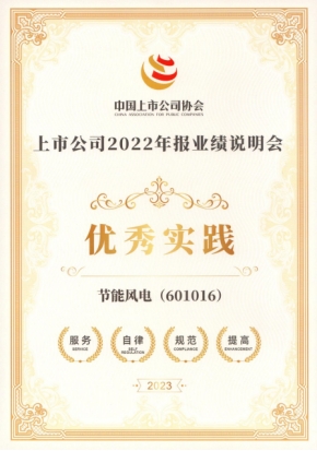 為進一步引導上市公司暢通與投資者的溝通渠道,常態(tài)化推動上市公司高質量召開業(yè)績說明會,中上協(xié)經對全市場上市公司召開年度業(yè)績說明會情況總結,與各地證監(jiān)局、滬深北交易所及投服中心充分溝通交流,綜合形成100家“2022年報業(yè)績說明會最佳實踐”和387家“2022年報業(yè)績說明會優(yōu)秀實踐”上市公司名單。風電公司將以此次獲獎為契機,繼續(xù)以高質量信息披露及投資者關系管理工作為抓手,積極營造尊重投資者的良好氛圍,提振投資者信心,助力公司高質量發(fā)展。