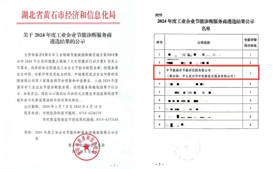 節(jié)能科技公司下屬研究院入選2024年度黃石市工業(yè)企業(yè)節(jié)能診斷服務(wù)商 |