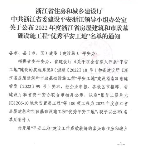 近期,浙江省住房和城鄉(xiāng)建設(shè)廳公布2022年度省房屋建筑和市政基礎(chǔ)設(shè)施工程“優(yōu)秀平安工地”名單,中節(jié)能實業(yè)公司太湖首座項目榮獲2022年度省“優(yōu)秀平安工地”。