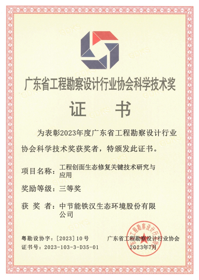 中節(jié)能鐵漢一項(xiàng)生態(tài)修復(fù)技術(shù)獲2023年度廣東省勘察設(shè)計(jì)行業(yè)協(xié)會科學(xué)技術(shù)獎三等獎 |