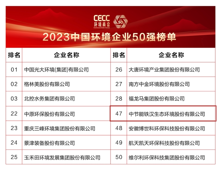 中節(jié)能鐵漢連續(xù)6年榮登“中國環(huán)境企業(yè)50強”榜單 |
