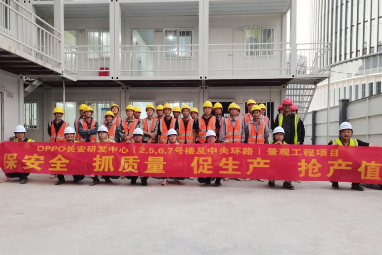 鐵漢山藝所屬廣東省東莞市OPPO長安研發(fā)中心項目(2、5、6、7號樓及中央環(huán)路)景觀工程,自10月份開工以來,采取以土建工程為主,園建工程、水電工程等專業(yè)配合的模式加速實施,鐵漢山藝及項目部投入大量技術力量推進項目實施,目前已完成6、7號樓三層樹池、異形坐凳、鋪裝墊層施工,同時全力推進實施石材、不銹鋼等樣板段施工,力爭以最快速度展開大面積施工。