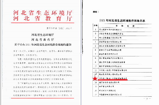 中國環(huán)保衡水公司榮獲2021年河北省生態(tài)環(huán)境教育基地榮譽稱號 |