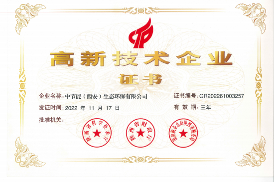 中國環(huán)保西安生態(tài)公司獲批國家高新技術(shù)企業(yè)認定 |