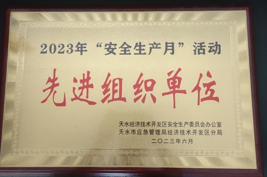 中國環(huán)保天水公司榮獲天水市經(jīng)濟技術(shù)開發(fā)區(qū)2023年“安全生產(chǎn)月”活動先進組織單位 |