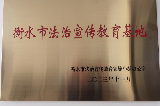12月21日,中國環(huán)保衡水公司榮獲第一批“衡水市法治宣傳教育基地”榮譽(yù)稱號。
