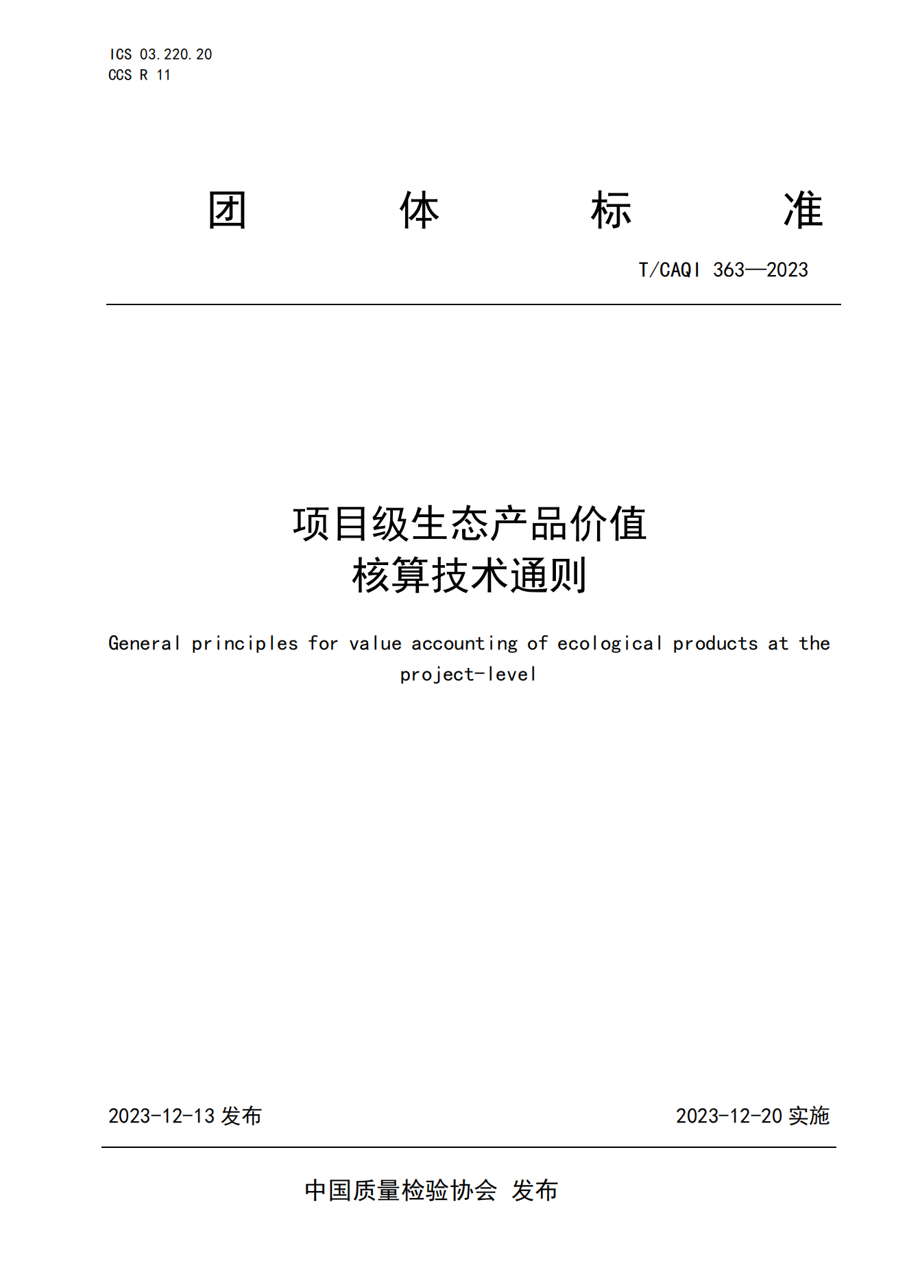 12月13日,研究中心牽頭起草的《項目級生態(tài)產(chǎn)品價值核算技術(shù)通則》(T/CAQI 363—2023)團體標(biāo)準(zhǔn)獲批發(fā)布,將于12月20日起正式實施。
