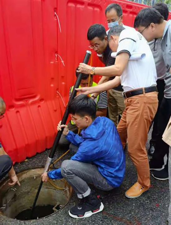 7月7日,深圳市地面坍塌防治領導小組辦公室副處長楊健君帶隊查看龍崗區(qū)平吉大道空洞隱患情況,深圳市地質(zhì)環(huán)境監(jiān)測院、龍崗區(qū)地防辦、龍崗區(qū)水務局、中國地質(zhì)車載雷達檢測項目D包等有關領導、專家和作業(yè)人員參加。