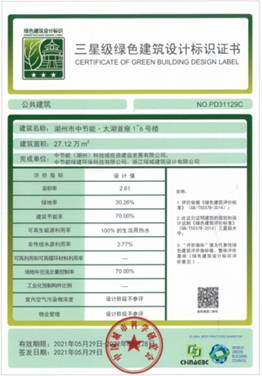 中節(jié)能實(shí)業(yè)公司太湖首座榮獲三星級(jí)綠色建筑標(biāo)識(shí)證書 |