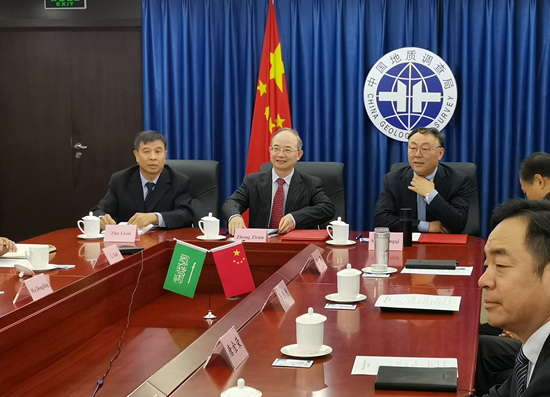 在阿拉伯語(yǔ)中,“沙特”是“幸福”的意思,“阿拉伯”則指“沙漠”,“沙特阿拉伯”意為“幸福的沙漠”。中國(guó)地礦人在這片“幸福的沙漠”中堅(jiān)守、耕耘,用辛勤的汗水滋育出了茁壯秀美的“沙漠之花”。 2020年10月18日,中國(guó)地質(zhì)調(diào)查局、中國(guó)地礦與沙特地質(zhì)調(diào)查局地球化學(xué)勘查合作授標(biāo)儀式在線(xiàn)舉行。中國(guó)地質(zhì)調(diào)查局局長(zhǎng)鐘自然與沙特工礦大臣、投資大臣、交通大臣等出席,中國(guó)地礦董事長(zhǎng)宋永祺出席并在授標(biāo)書(shū)上簽字。