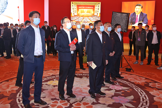 大家共同參觀了室外展區(qū)、序廳、中央綜合展區(qū)、地方展區(qū)、展望展區(qū)的6000多項(xiàng)展覽要素,在一件件實(shí)物模型、一段段生動(dòng)視頻、一幅幅圖片圖表中感受黨和國(guó)家發(fā)展進(jìn)程中這極不尋常、極不平凡的10年。集團(tuán)公司位于江蘇省東臺(tái)市的“風(fēng)光漁”互補(bǔ)產(chǎn)業(yè)基地、甘肅省酒泉市風(fēng)光電基地項(xiàng)目和參與制作的大氣環(huán)境質(zhì)量改善展示平臺(tái)亮相展覽,令觀展人員倍感振奮和自豪,大家紛紛感嘆,集團(tuán)公司近年來(lái)取得發(fā)展和成績(jī),根本在于以習(xí)近平同志為核心的黨中央的堅(jiān)強(qiáng)領(lǐng)導(dǎo),在于習(xí)近平新時(shí)代中國(guó)特色社會(huì)主義思想的科學(xué)指引。