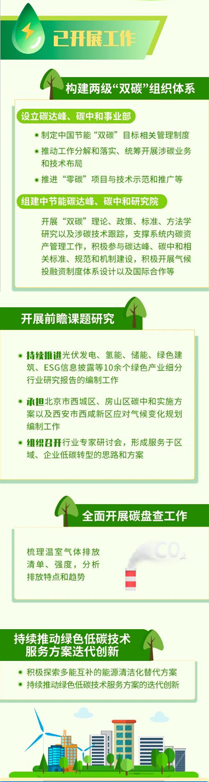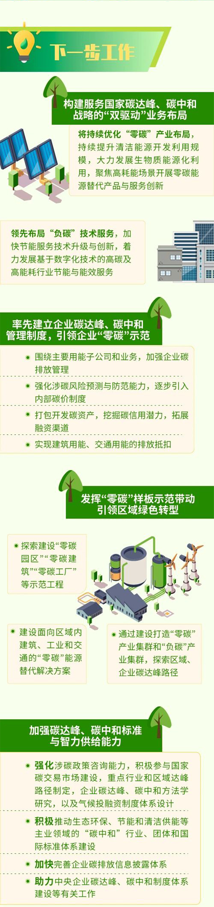 下一步,中國節(jié)能將不斷提升推動國家“碳中和”目標(biāo)實(shí)現(xiàn)的咨詢規(guī)劃和資源統(tǒng)籌能力,探索構(gòu)建服務(wù)國家“碳中和”愿景的“零碳產(chǎn)業(yè)+負(fù)碳技術(shù)”雙驅(qū)動布局,建立領(lǐng)先的“雙碳”制度體系,著力加強(qiáng)“雙碳”標(biāo)準(zhǔn)與智力供給能力。