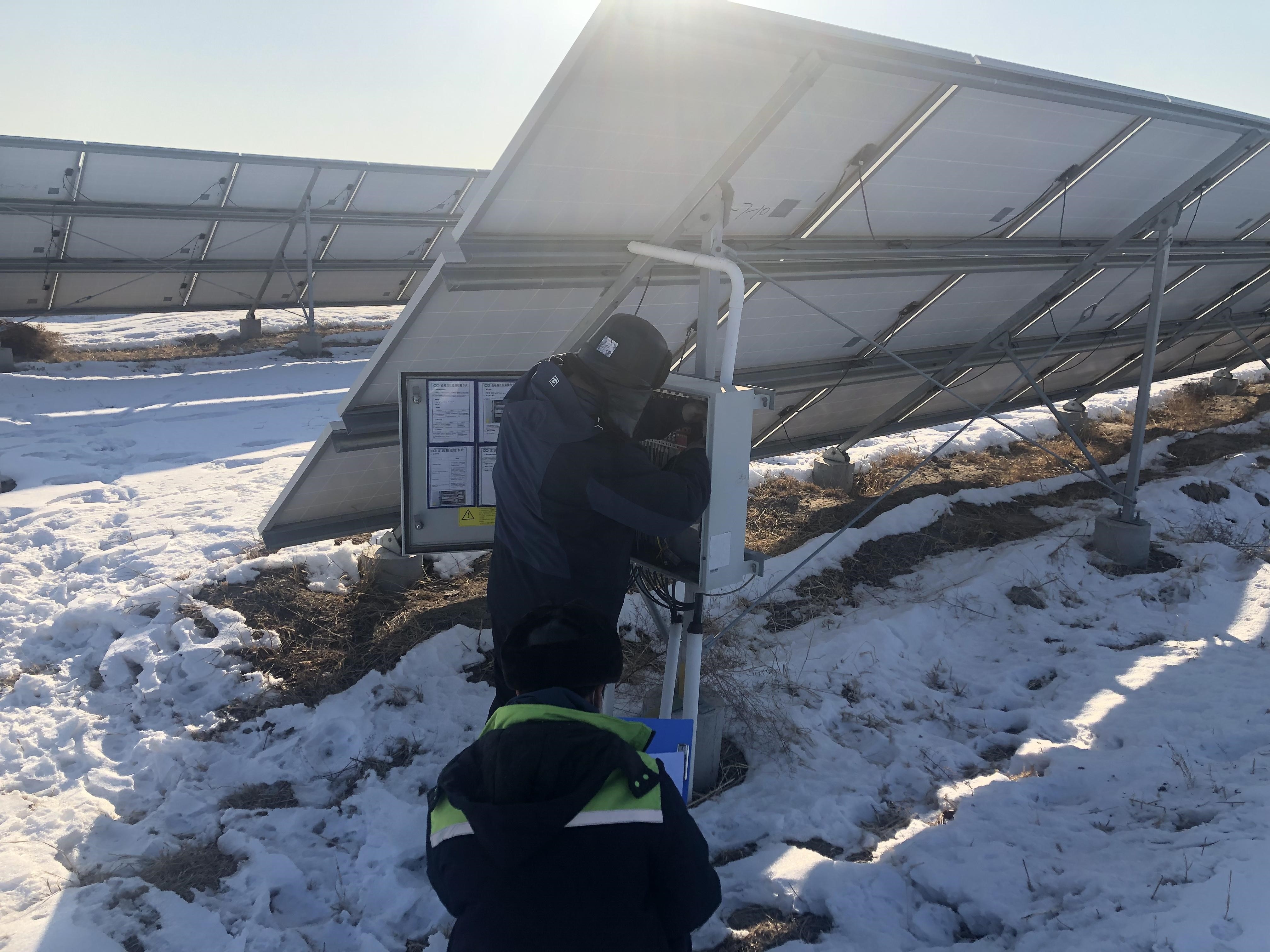進(jìn)入11月以后,東北、華北地區(qū)相繼出現(xiàn)了區(qū)域性暴雪天氣,氣溫驟降。全體運(yùn)維人員不畏嚴(yán)寒,堅守一線,努力克服天氣寒冷、道路雪滑等影響,戰(zhàn)嚴(yán)寒,斗風(fēng)雪,站好每一班崗,用責(zé)任筑起了堅強(qiáng)堡壘,讓黨旗在抗擊風(fēng)雪嚴(yán)寒的一線飄揚(yáng)。 太陽能華北區(qū)山西片區(qū)多山地項(xiàng)目,運(yùn)維人員冒著嚴(yán)寒進(jìn)行設(shè)備巡檢工作,即使雙手凍得通紅、僵硬,也阻擋不了他們檢修電氣設(shè)備的決心。因?yàn)樗麄兠靼讜r間就是發(fā)電量,設(shè)備提前一分鐘維護(hù)好,設(shè)備就多發(fā)一度電。 太陽能華北區(qū)吉林片區(qū)運(yùn)維人員在極端嚴(yán)寒天氣條件下,依然堅守崗位、不恐懼、不懈怠,將所有安全隱患都排查到位,做好安全運(yùn)維工作。風(fēng)雪再大,阻擋不住運(yùn)維人積極工作的腳步;天氣再冷,影響不了運(yùn)維人一絲不茍的工作態(tài)度;條件再惡劣,無法動搖運(yùn)維人守護(hù)設(shè)備穩(wěn)定運(yùn)行的決心! 太陽能華北區(qū)魯西片區(qū)嚴(yán)格落實(shí)習(xí)近平總書記“奮力把失去的時間搶回來、把疫情造成的損失補(bǔ)回來”的重要指示精神,全體運(yùn)維人員頂著風(fēng)雪開展電力設(shè)備檢修維護(hù),努力排除安全隱患,確保各設(shè)備安全穩(wěn)定運(yùn)行。大雪過后,第一時間清掃組件表面積雪,盡最大努力降低發(fā)電損失,想方設(shè)法提高發(fā)電量。 先鋒模范做表率,全力以赴除故障