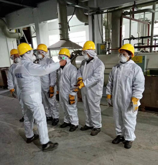 為生產(chǎn)現(xiàn)場(chǎng)的一線員工測(cè)量體溫 為了確保疫情發(fā)生期間生產(chǎn)一線員工的安全,荊州公司加大了一線員工勞動(dòng)防護(hù)用品的投入,轉(zhuǎn)運(yùn)班人員出車前由生產(chǎn)負(fù)責(zé)人現(xiàn)場(chǎng)指揮發(fā)車,檢查轉(zhuǎn)運(yùn)人員勞動(dòng)防護(hù)用品配戴情況,同時(shí)測(cè)量體溫,對(duì)車輛開(kāi)展隱患排查;生產(chǎn)班在生產(chǎn)前,由班組長(zhǎng)負(fù)責(zé)檢查現(xiàn)場(chǎng)處置人員的勞動(dòng)用品配戴情況,同時(shí)測(cè)量體溫,開(kāi)展設(shè)備隱患排查工作;工作結(jié)束后,由生產(chǎn)負(fù)責(zé)人開(kāi)展車輛、人員、生產(chǎn)現(xiàn)場(chǎng)消毒工作,確保疫情期間人員健康和道路運(yùn)輸安全。 |