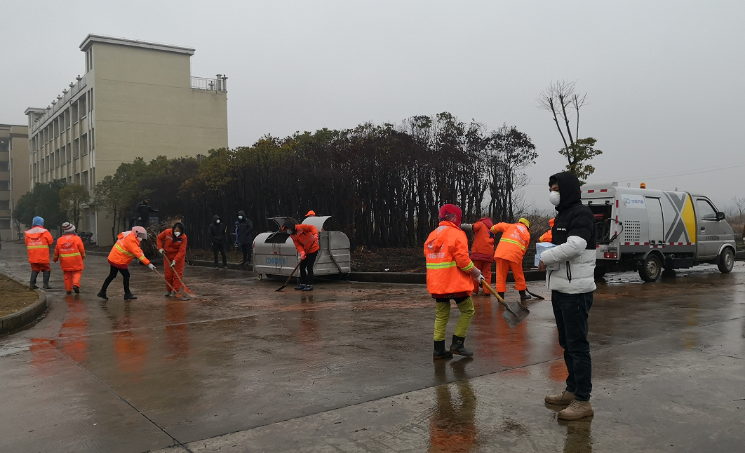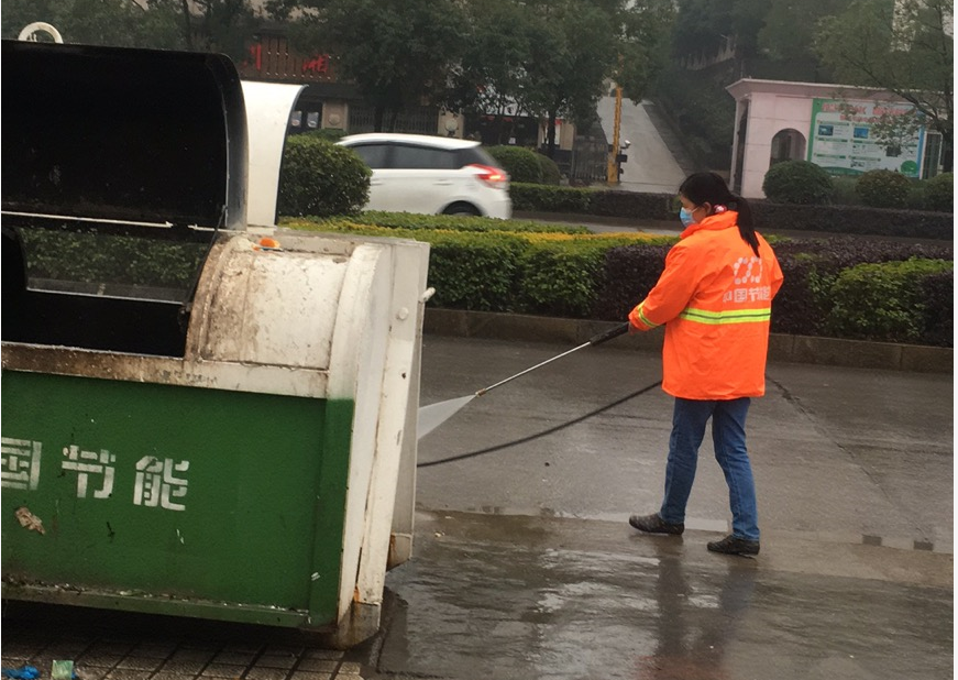 垃圾收集點沖洗作業(yè) 2019年11月1日,嘉魚公司全面接管嘉魚縣城區(qū)環(huán)衛(wèi)工作,主要是城區(qū)道路清掃保潔、垃圾收集運輸轉(zhuǎn)運等工作。結(jié)合疫情發(fā)展,嘉魚公司及時加強防控措施:一是每日統(tǒng)計并上報員工身體情況,強調(diào)防護并加強宣傳督導(dǎo);二是部署各醫(yī)院、隔離區(qū)的生活垃圾采用專箱、專車、專人清運,東門轉(zhuǎn)運站設(shè)立單獨站點,作業(yè)人員加強防護,加強消殺,杜絕感染風(fēng)險;三是垃圾清運重心由路段轉(zhuǎn)向社區(qū)、小區(qū),應(yīng)對市民外出減少造成的垃圾分布轉(zhuǎn)移問題,避免積存;四是運輸車輛及公廁的日常消殺工作,提升防御等級;五是積極協(xié)調(diào)采購防護物資,做好后勤保障;六是配合政府工作,為嘉魚東交通管制點、隔離區(qū)辦公區(qū)域配置垃圾收集容器,調(diào)整收運路線,為工作人員生活提供便利。