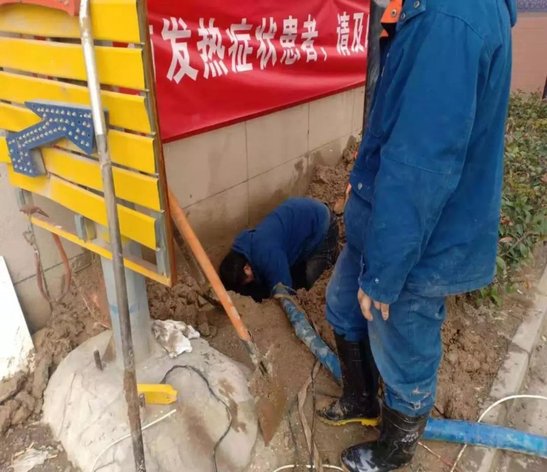 下午1點(diǎn),唐本紅隊(duì)長(zhǎng)帶領(lǐng)當(dāng)日值班的梅琨、孫順利兩位年輕同志來到現(xiàn)場(chǎng)。經(jīng)實(shí)地查看,這條漏水地段地下不僅有供水管道,還有通信光纜、供電電纜、燃?xì)獾叵鹿芫€等,分布較為復(fù)雜,且供水管道緊靠小區(qū)1號(hào)樓,不宜使用大型機(jī)械,只能選擇人工開挖的方式進(jìn)行施工。但處在疫情蔓延迅猛時(shí)期,施工工人情況復(fù)雜,無法掌握其健康狀況及接觸史。同時(shí),按照縣疫情防控應(yīng)急指揮部要求,全縣居民居住區(qū)面臨出行管控,交通不便讓尋找健康工人變得更加困難。 公司黨支部書記陸希志了解情況后,當(dāng)即決定組織自有工人搶修,不再借助外部人員進(jìn)行作業(yè)。關(guān)鍵時(shí)刻,唐本紅隊(duì)長(zhǎng)發(fā)揮黨員干部先鋒模范作用,帶領(lǐng)當(dāng)日值班兩位年輕同志,穿上雨靴,準(zhǔn)備好潛水泵、鐵锨、搶修哈弗節(jié)等工具,火速趕往現(xiàn)場(chǎng),冒雨投入戰(zhàn)斗??恐?把鐵锨,他們一锨又一锨,一邊開挖一邊抽水,默契配合,一鼓作氣,經(jīng)過四個(gè)小時(shí)的緊張施工,終于在17時(shí)20分將漏點(diǎn)順利修復(fù),使“清泉”及時(shí)流入千家萬戶,確保了居民生活正常用水。 踐行初心使命,體現(xiàn)責(zé)任擔(dān)當(dāng)。懷遠(yuǎn)中環(huán)水務(wù)廣大黨員干部職工始終堅(jiān)守崗位、沖鋒在前,以高質(zhì)量生產(chǎn)和高效率應(yīng)急事件處理保障懷遠(yuǎn)供水安全,為助力屬地打贏新冠肺炎防控阻擊戰(zhàn)貢獻(xiàn)一份力量。
