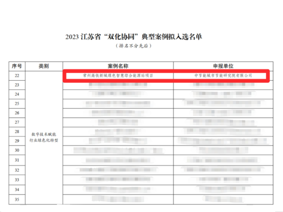 近日,江蘇省委信辦發(fā)布《2023江蘇省數(shù)字化綠色化協(xié)同轉(zhuǎn)型發(fā)展典型案例擬入選名單》,研究院高鐵新城綠色智慧綜合能源站項目入圍數(shù)字技術賦能行業(yè)綠色化轉(zhuǎn)型案例。常州市僅4個案例入選。