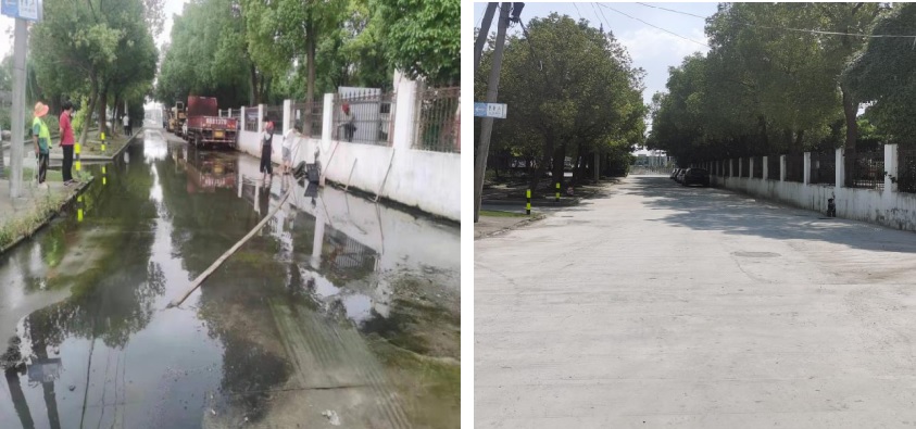 2023年5月,防汛排澇安全排查期間,廠區(qū)大門口進(jìn)出主干道雨天積水情況嚴(yán)重。由于廠區(qū)主干道周邊有閑置空地,載重卡車和社會(huì)車輛隨意停放,嚴(yán)重影響進(jìn)出廠區(qū)生產(chǎn)運(yùn)行車輛通行;載重卡車碾壓造成道路坑洼不平、雨污管道損毀嚴(yán)重,導(dǎo)致廠區(qū)和周邊社區(qū)晴天污水滿溢,雨天雨污橫流、水深路滑,嚴(yán)重影響洛社污水廠的安全生產(chǎn)及社區(qū)居民的正常生活。