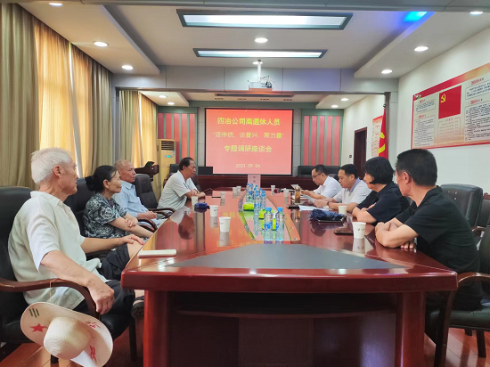 為深入推動(dòng)學(xué)習(xí)貫徹習(xí)近平新時(shí)代中國特色社會(huì)主義思想主題教育走深走實(shí),廣泛聽取老同志的心聲感言和意見建議,四冶公司黨委組織離退休人員圍繞“話傳統(tǒng)、談復(fù)興、聚力量”開展專題調(diào)研座談。公司黨委副書記方忠紅及黨群部有關(guān)同志參加座談會(huì)。