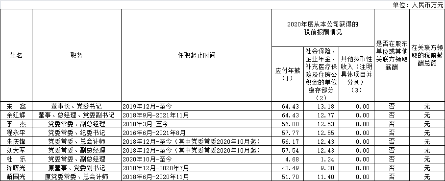 中國(guó)節(jié)能環(huán)保集團(tuán)有限公司企業(yè)負(fù)責(zé)人2020年度薪酬情況