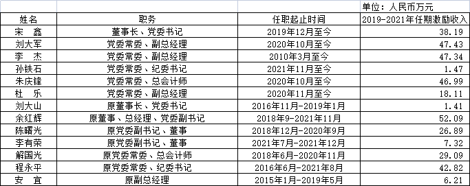中國節(jié)能環(huán)保集團有限公司企業(yè)負責人2019-2021年任期激勵收入情況